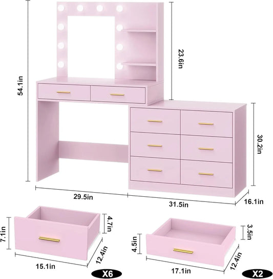 61 Inch Pink Illuminated Vanity Desk With Illumination Control System
