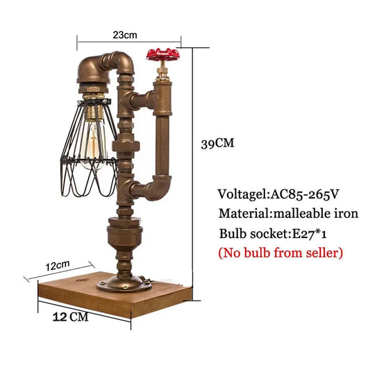 Loft Industrial Style Retro Desk Lamp Edison Water Pipe Lamp American Bedroom Study Water Pipe Decorative Table Lamp