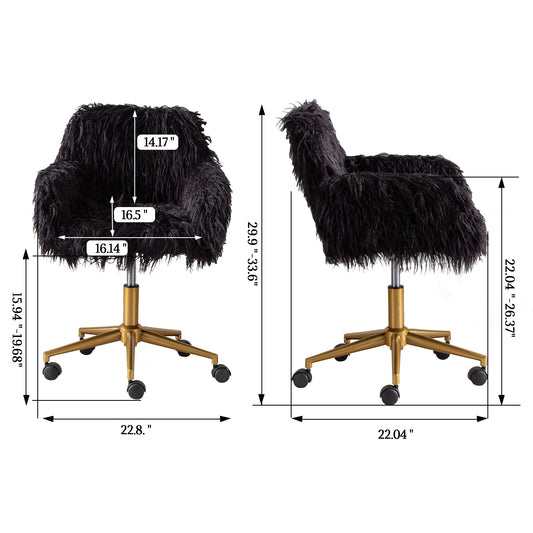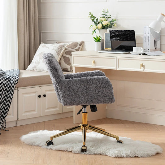 A&A Furniture Office Chair,Artificial rabbit hair Home Office Chair with Golden Metal Base,Adjustable Desk Chair Swivel Office C