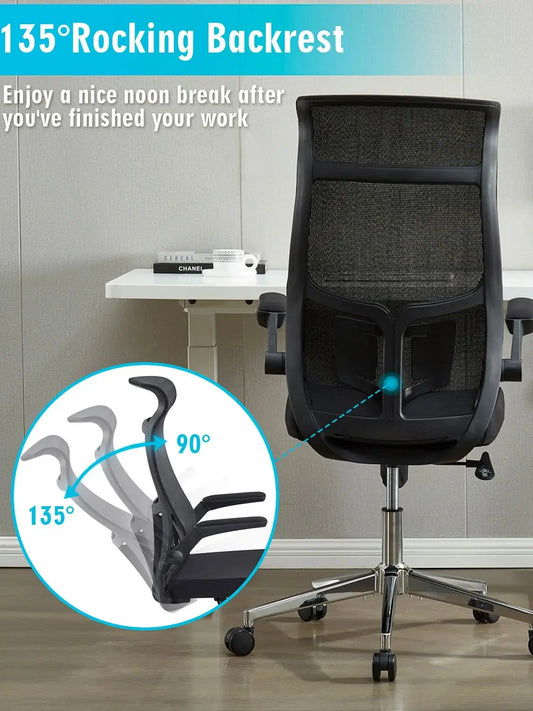 Ergonomic Office Chair, Fixed Headrest with Flip Up Arm, Adjustable Lumbar Support and PU Wheels Swivel Tilt Function Black