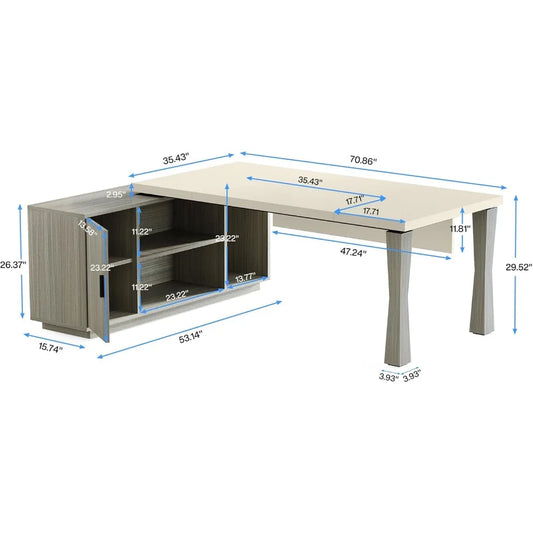 71-Inch Executive Desk, L-Shaped Desk with Cabinet, Large Office Desk with Storage Shelves, Writing Table Desk Business Furnitu