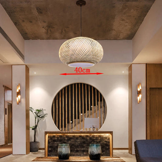 Decorative LED Bamboo Pendant Lamp Vintage Wicker Lampshade Hanging Light Hand-Woven Chandelier Home Decor Lamp