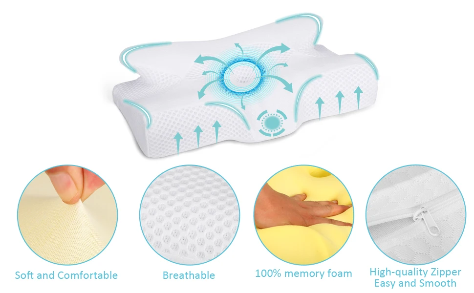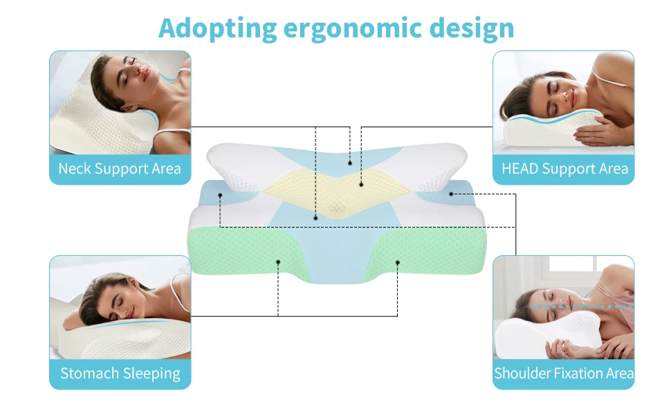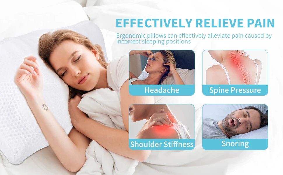 Ergonomic Orthopedic Neck Support Pillow Contour Memory Foam Pillow Cervical Pillow for Neck Pain Relief