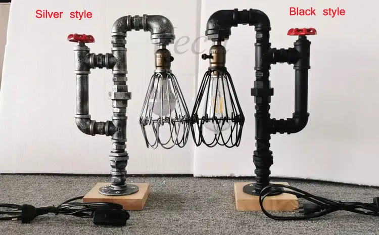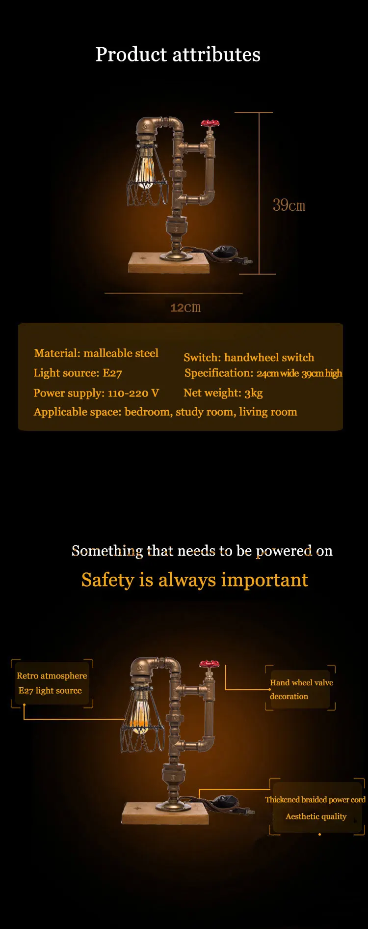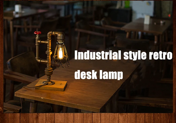 Loft Industrial Style Retro Desk Lamp Edison Water Pipe Lamp American Bedroom Study Water Pipe Decorative Table Lamp