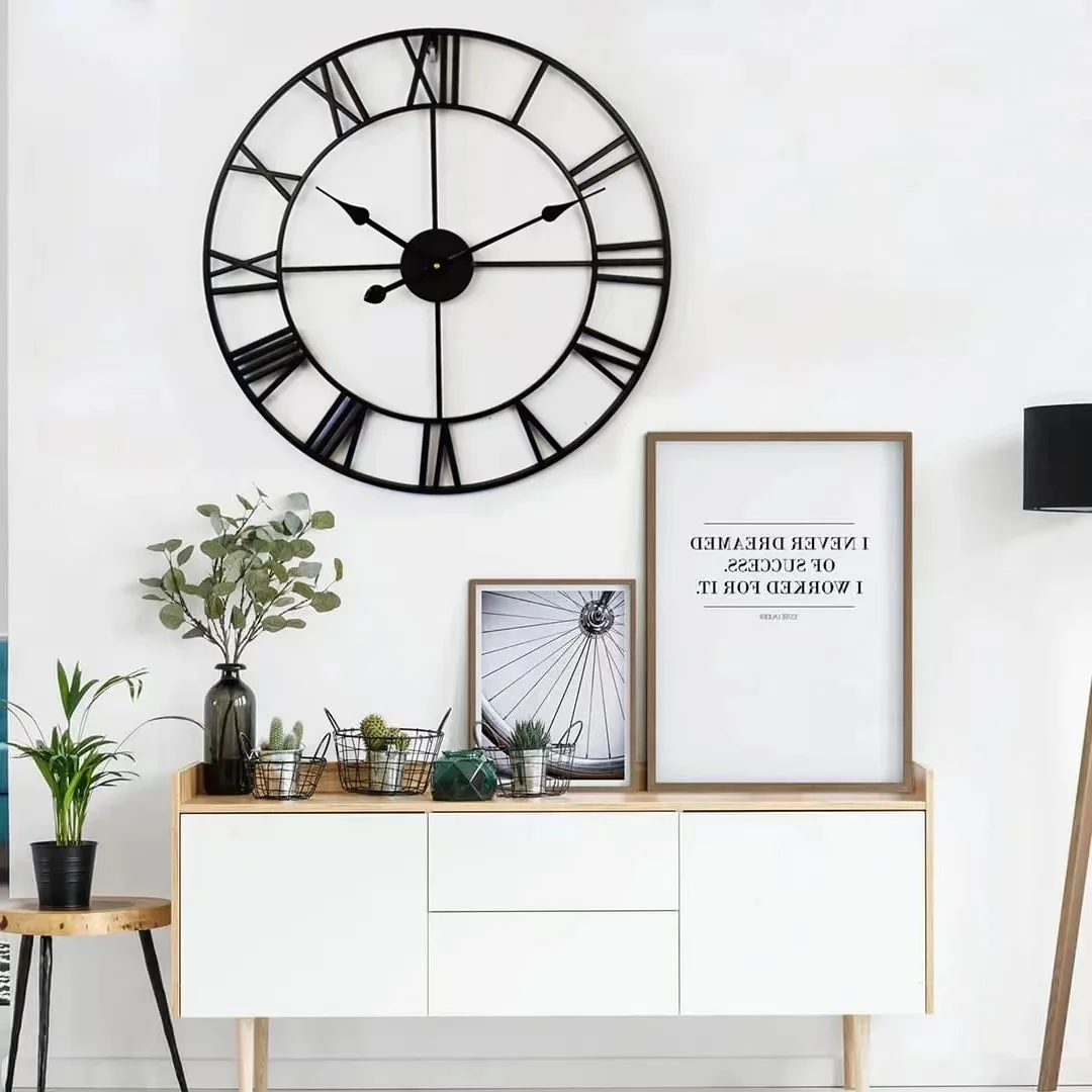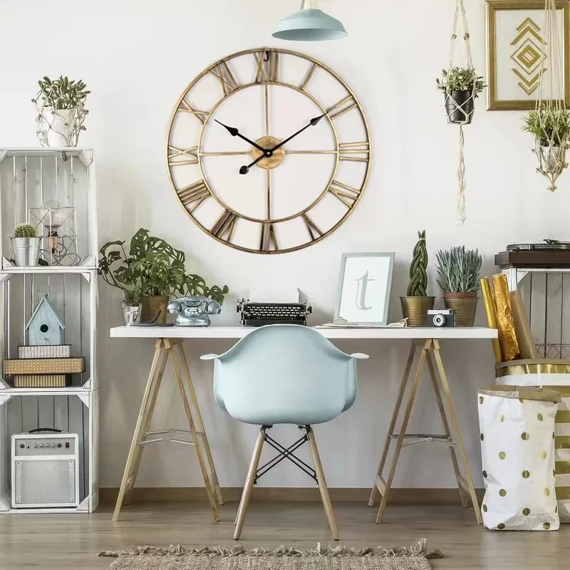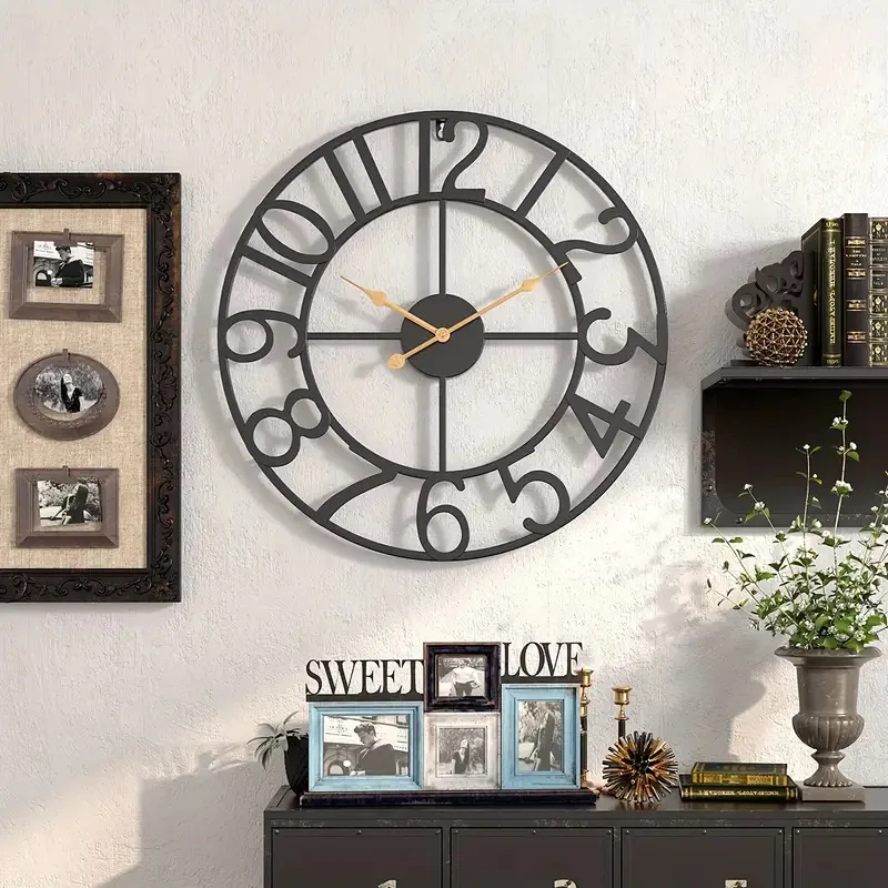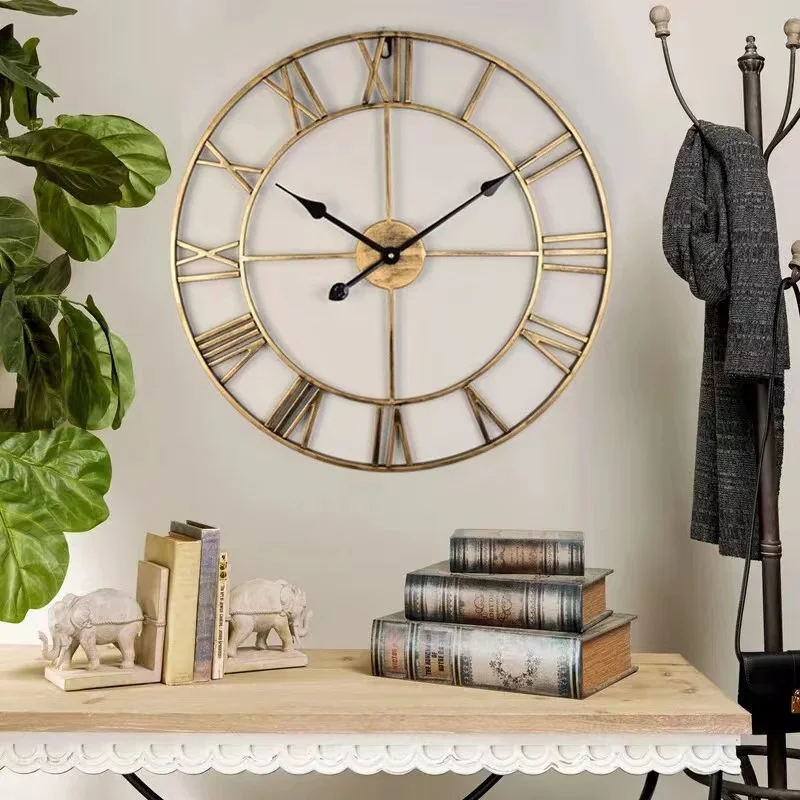 Retro Metal Wall Clock Creative Iron Art Decoration Digital Living Room Watch Home Decoration Wall Hanging Art Large Wall Clock