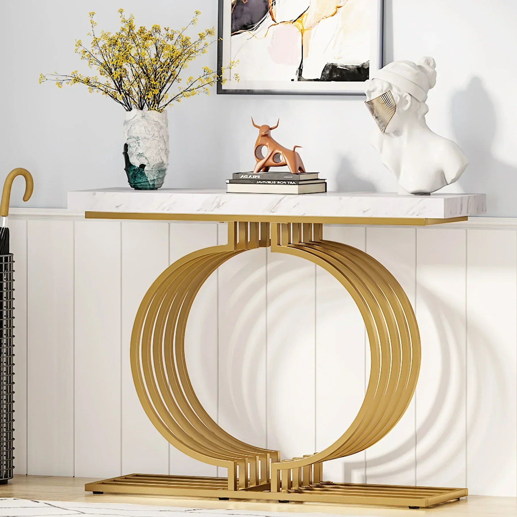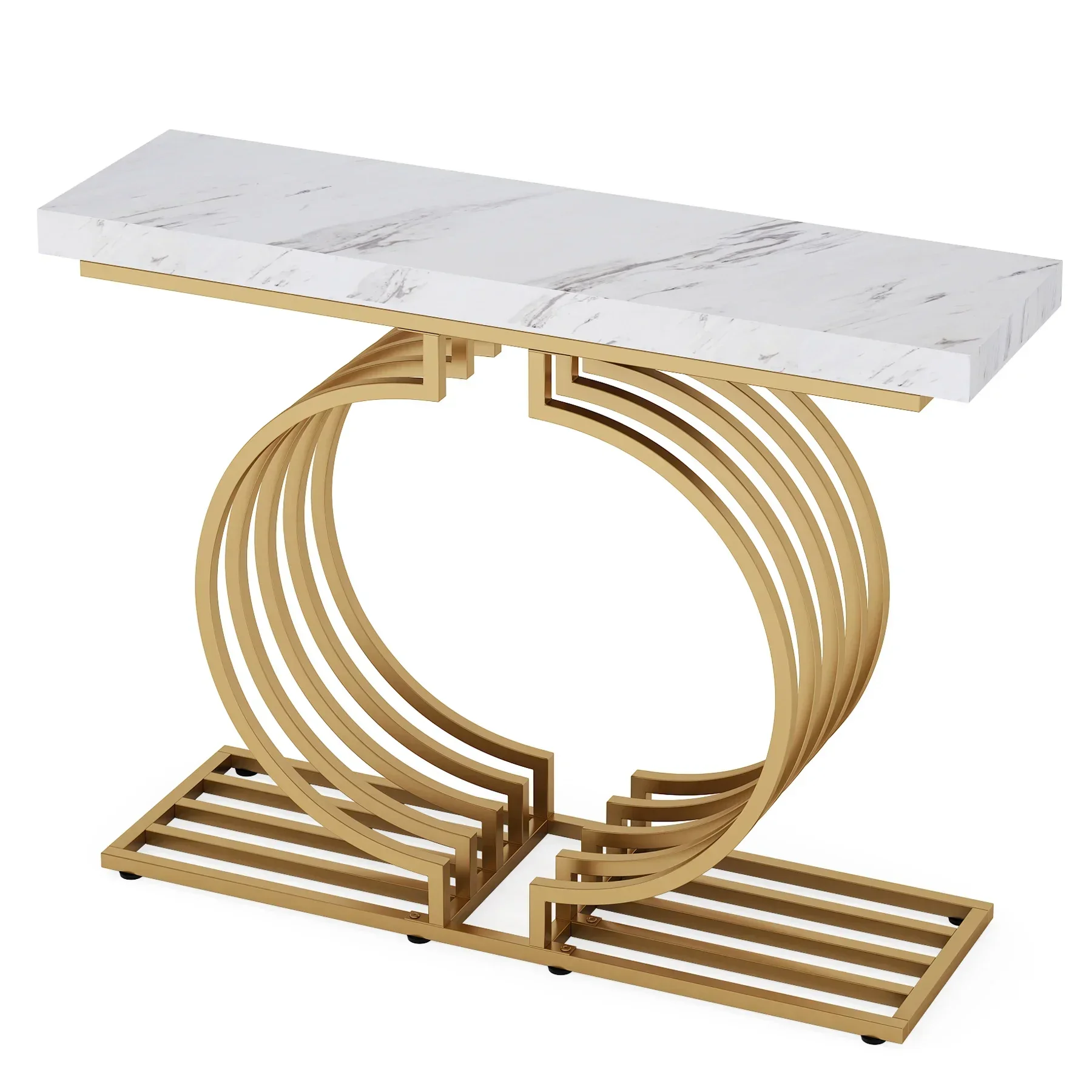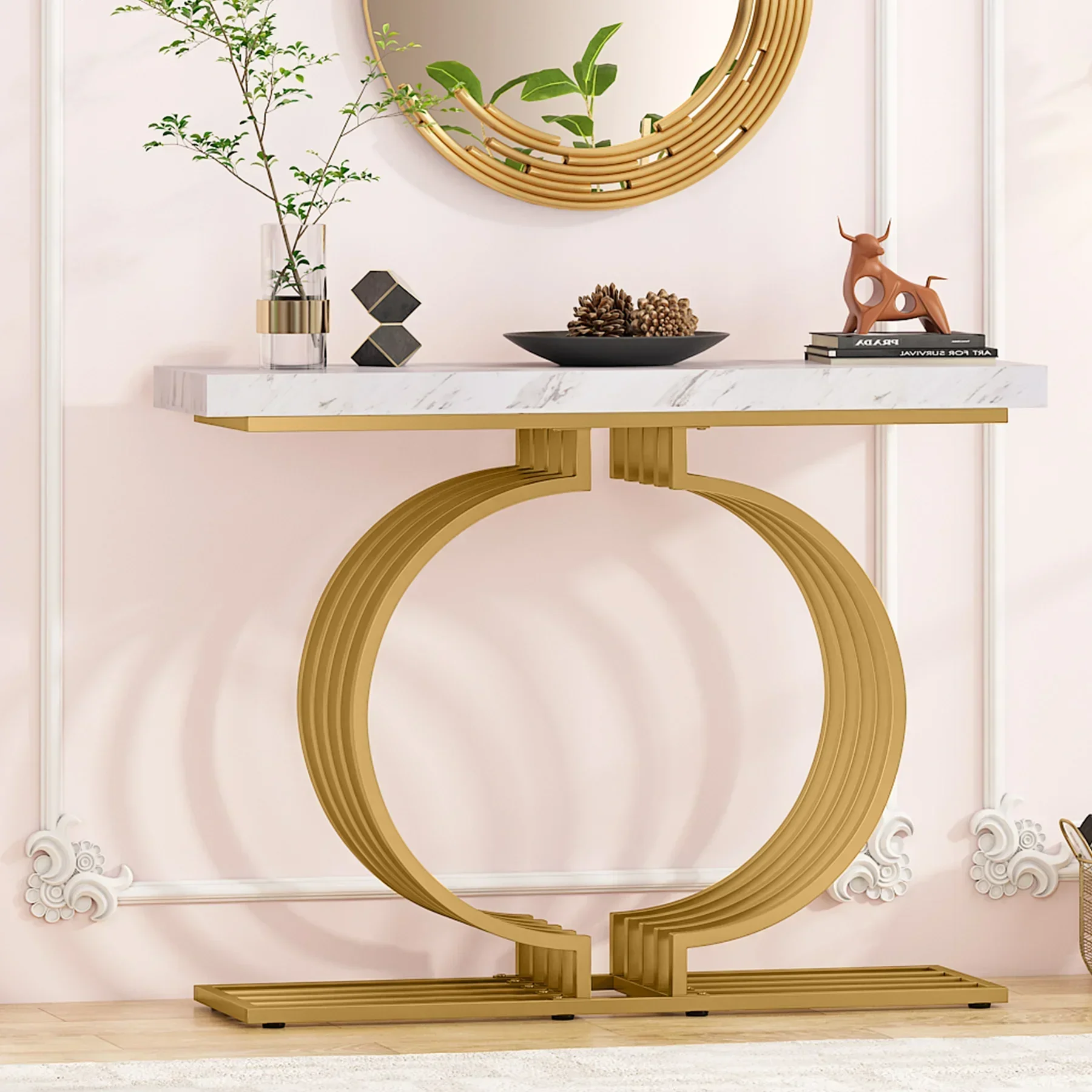 COMBINATION OF POWER & STYLE - This faux marble console table showcases an elegant gold frame and curved lines accents that pair seamlessly with a clean tabletop for a luxurious modern glam look. With a striking geometric design for a touch of impeccable style, this table will be sure to enliven any space. From an entryway to the living room and beyond, the entryway table offers room to display decor pieces while also clearing up clutter.