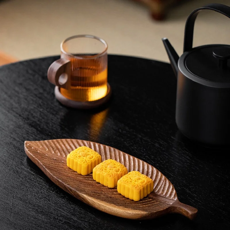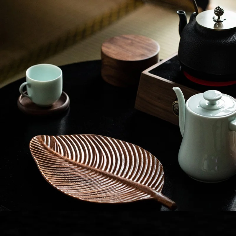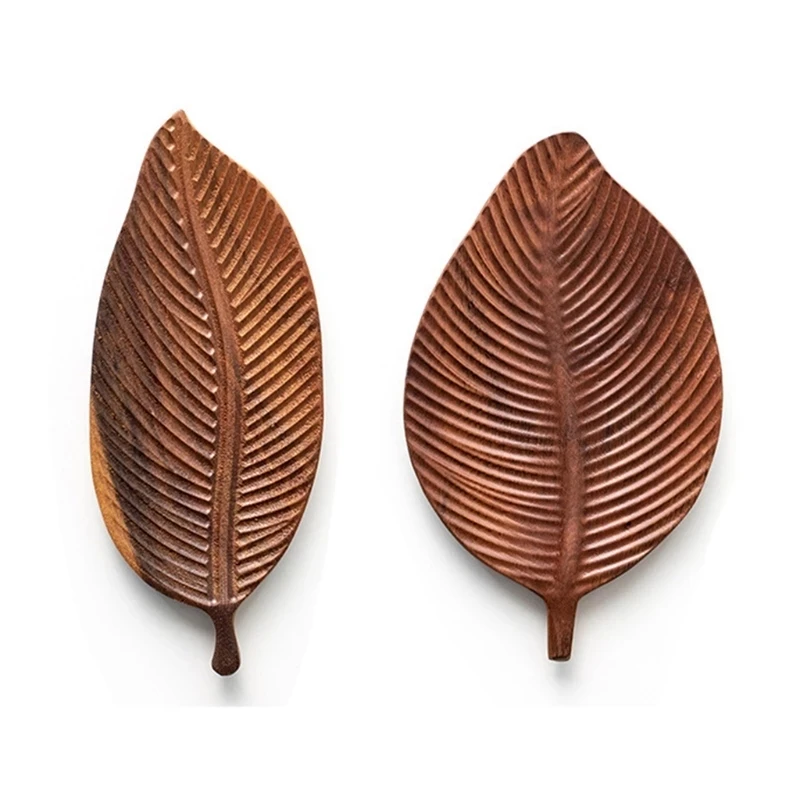 Wooden Leaf Shape Decorative Tray for Coffee Table Decor Vanity Organiser Counter top Kitchen Ring Dish Holder Refreshment Tray